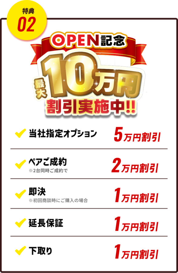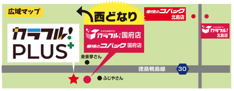 対象はカラフル国府店か北島店での購入車両に限ります。有効期限は購入日から3年以内。保険修理は対象外です。他の割引と併用はできません。