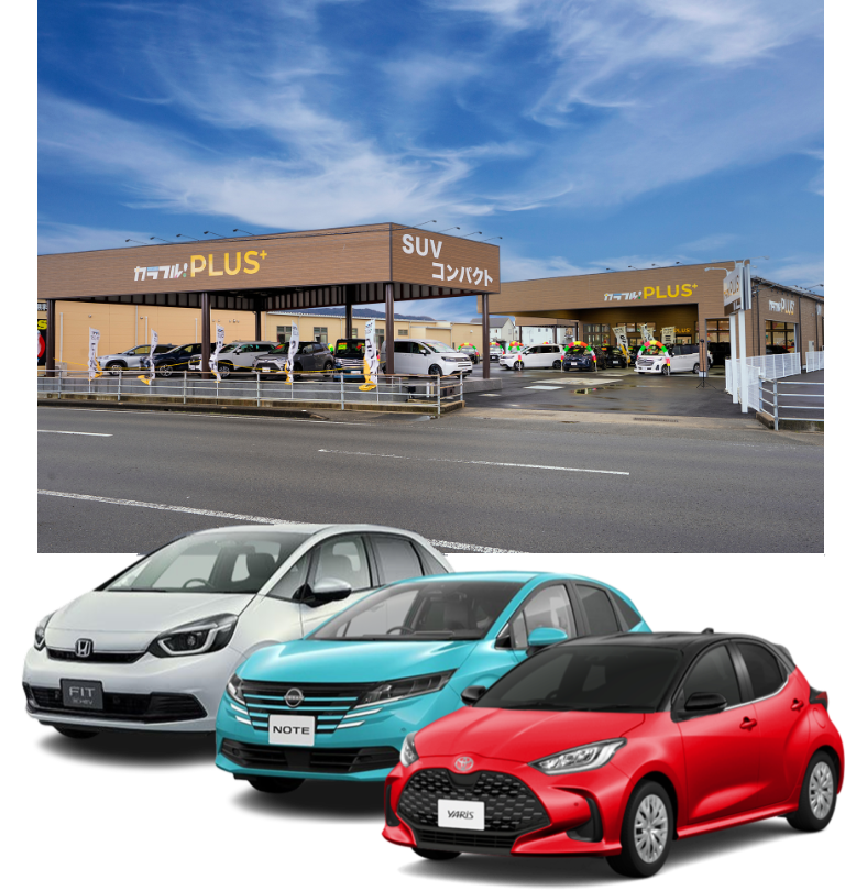 カラフル!プラスでは、普通車専門店として新車から未使用車、中古車まで幅広く取り扱いをしています。それぞれお客様のライフスタイルやご予算に合わせてスタッフが丁寧に説明をしています。